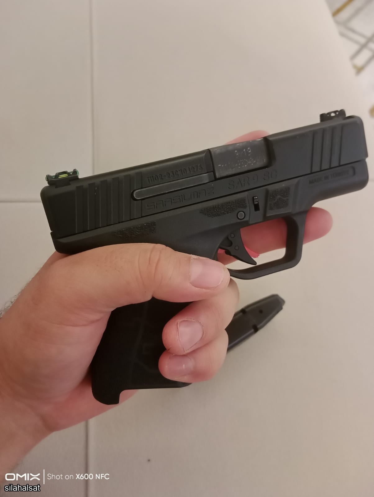 Silahta çizik dahi yoktur. Kutusunda sıfır ayarında, taşıması çok kolay, ruhsatlı Sarsılmaz Sar9 SC marka, 12+1, 9*19 mm, avuç içi kadar bir silah