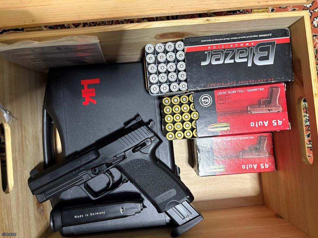 Orijinal kutusunda, yedek şarjörü, kitapçıkları ile sıfır ayarında HK USP 45 Custom Sport.